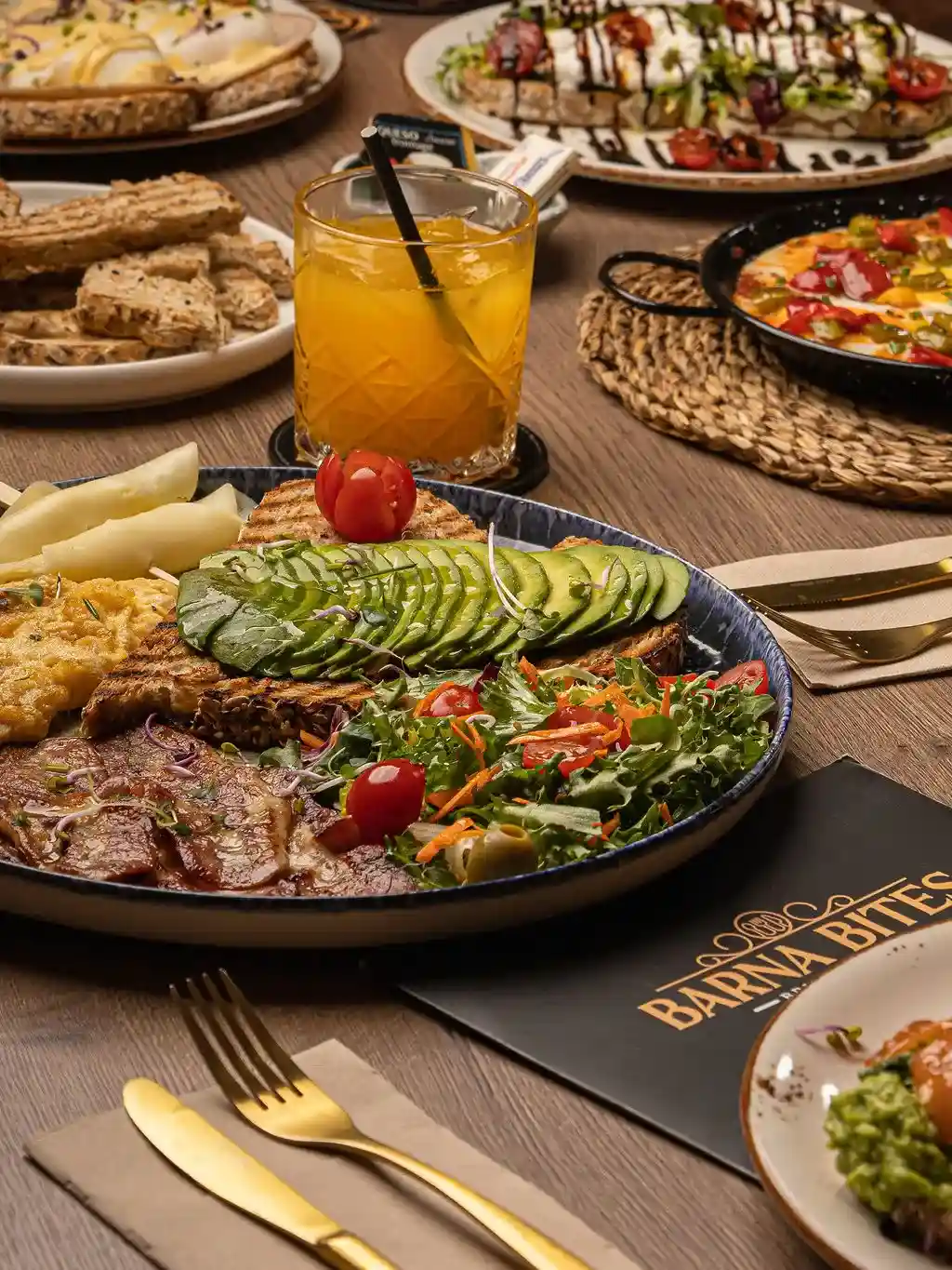 Barna Bites is more than a restaurant, it is a halal experience in Barcelona where Mediterranean warmth fuses with the soul of the Middle East and international flavors. A vibrant and welcoming space designed to share, enjoy, and connect around the table. From our signature brunches and irresistible pancakes to premium flame grilled meats, gourmet burgers, and fresh seafood. Every dish is created to surprise, comfort, and satisfy.