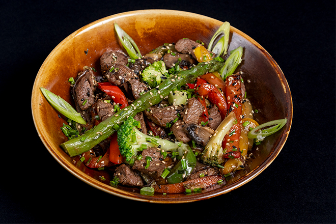 250–300g Galician beef tenderloin with creamy mushroom sauce served with fries