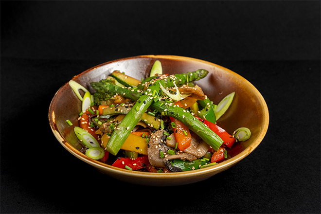 Stir-fried mixed vegetables with sesame oil and soy sauce